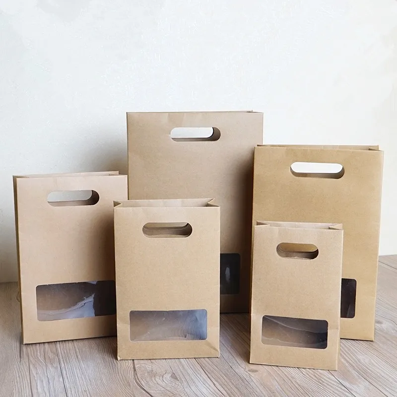 200pcs/lot 22.8*15*6cm Kraft Paper Bags With Window Biscuits Paper Bags